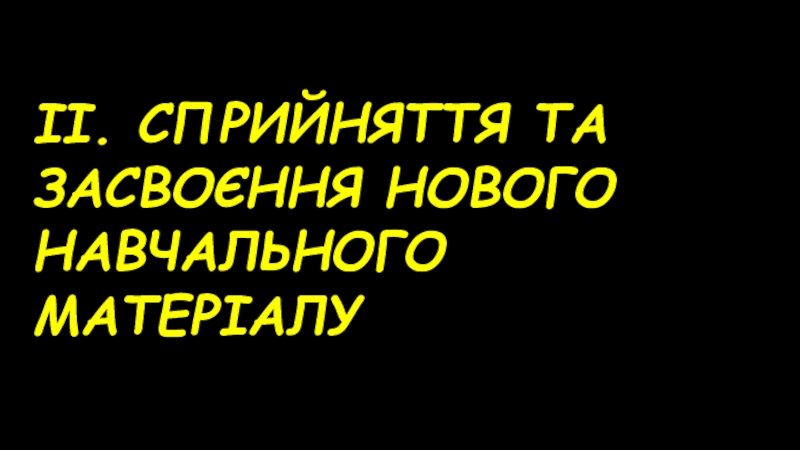 Слайд 10ІІ. СПРИЙНЯТТЯ ТА ЗАСВОЄННЯ НОВОГО НАВЧАЛЬНОГО МАТЕРІАЛУ