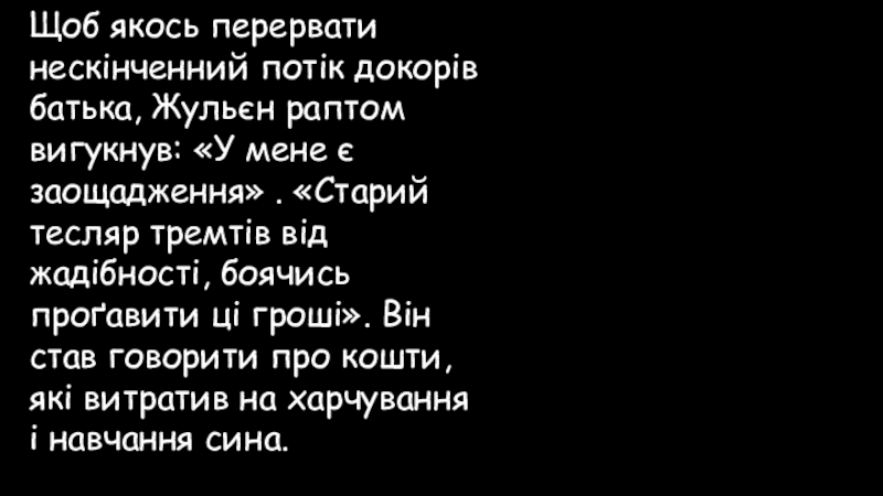 Слайд 83Щоб якось перервати нескінченний потік докорів батька, Жульєн раптом вигукнув: «У