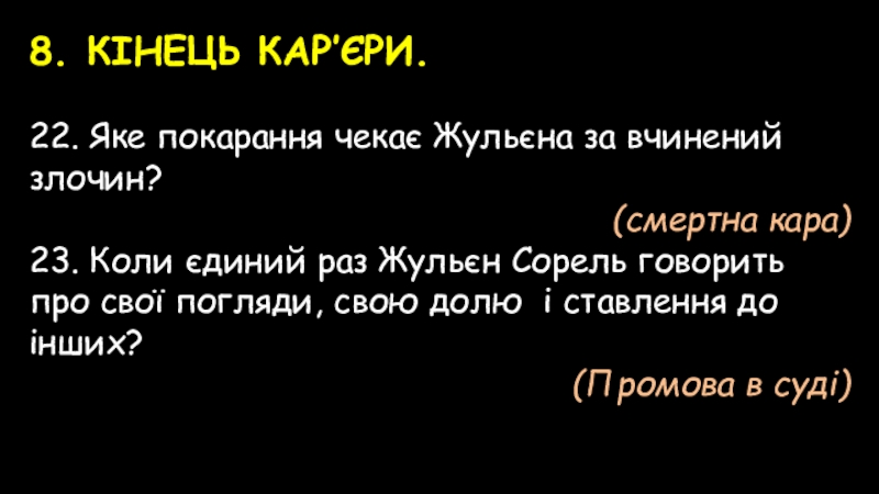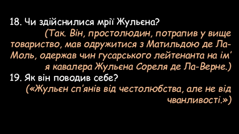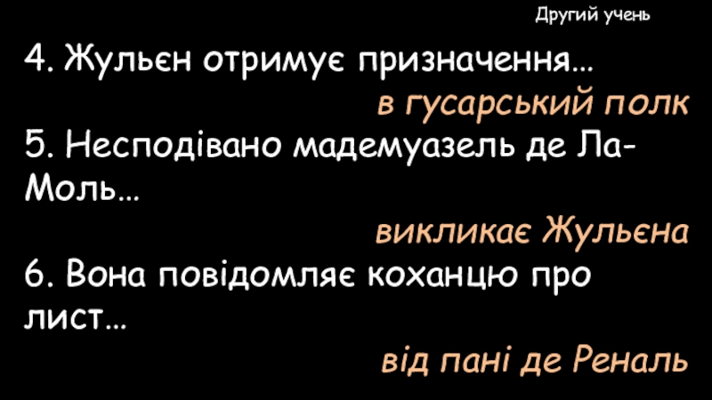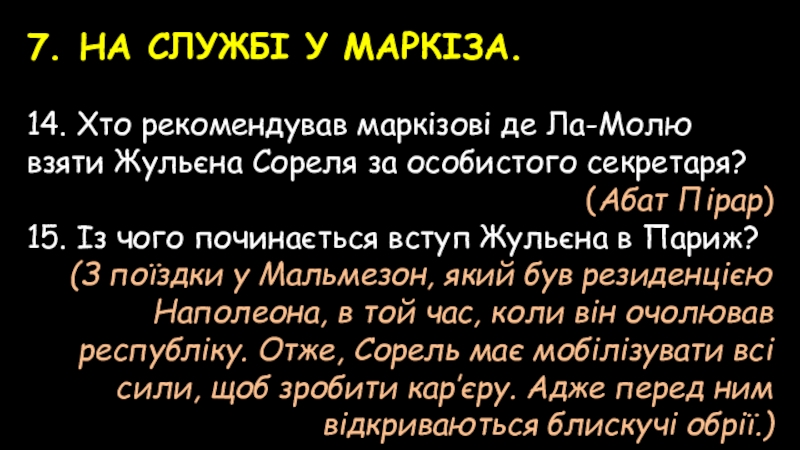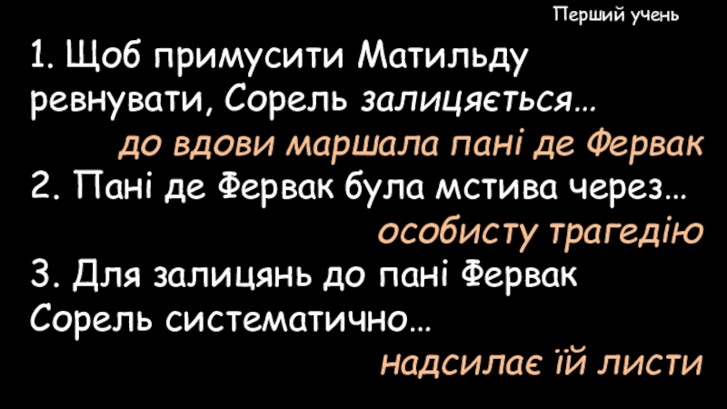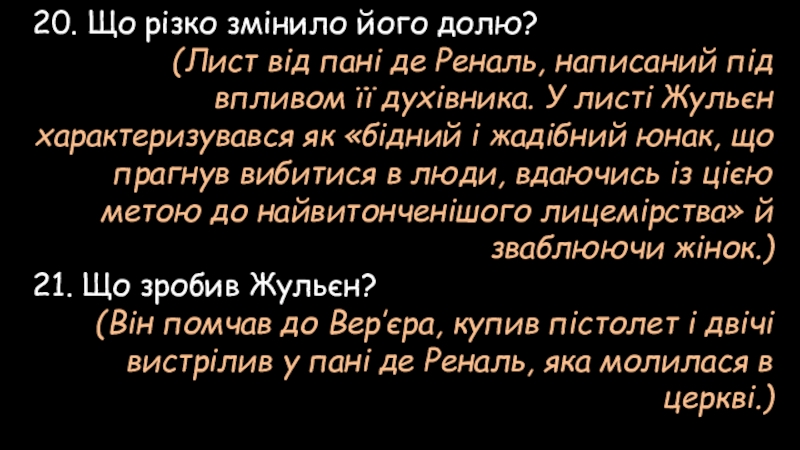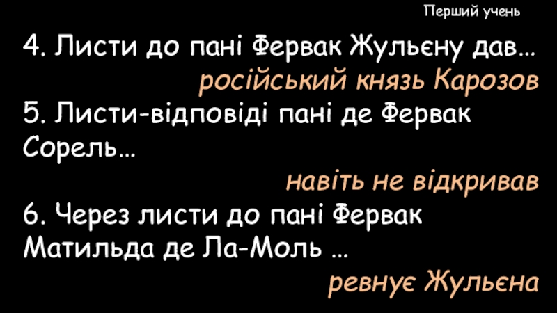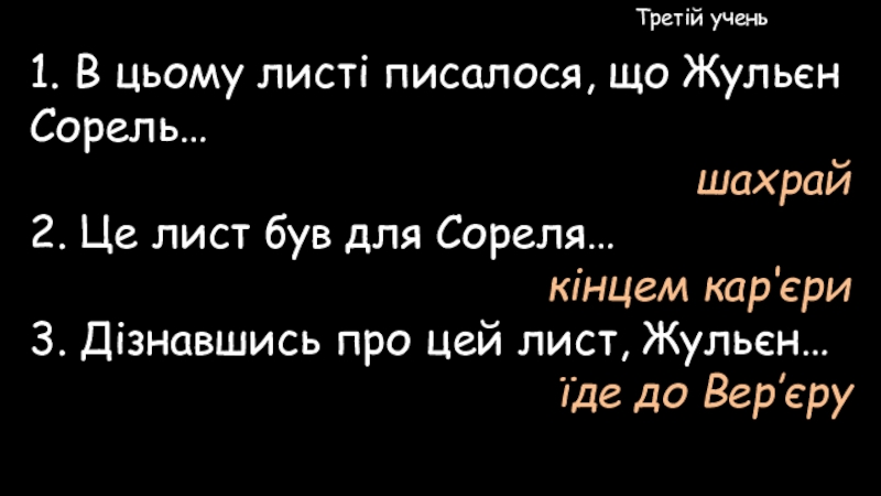 1. В цьому листі писалося, що Жульєн Сорель…