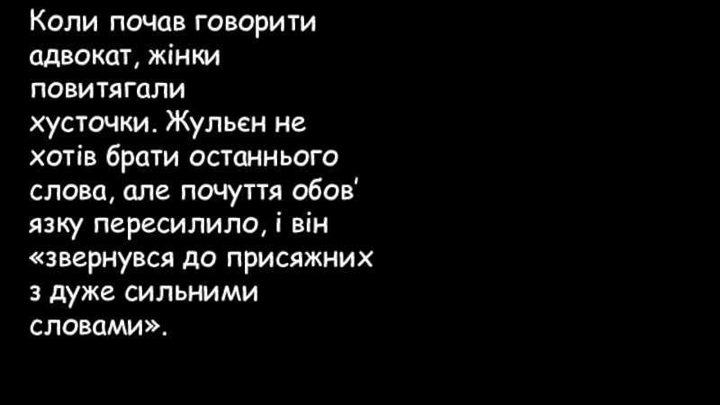 Слайд 68Коли почав говорити адвокат, жінки повитягали хусточки. Жульєн не хотів брати останнього