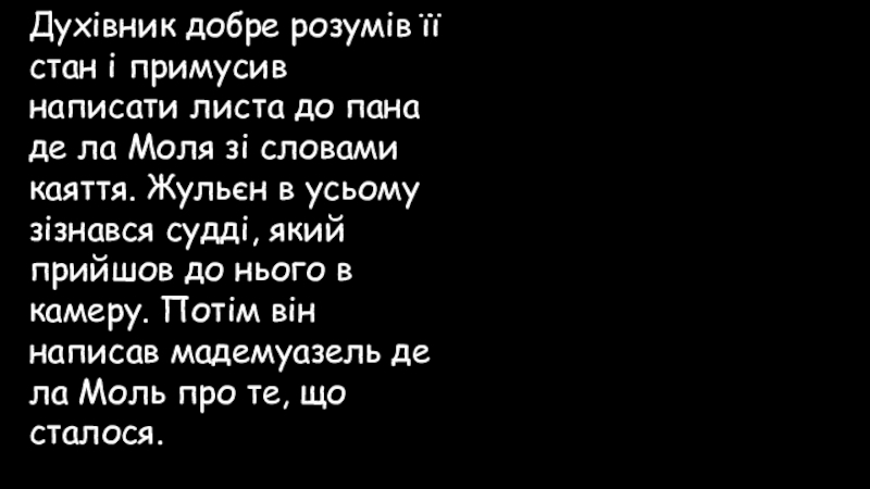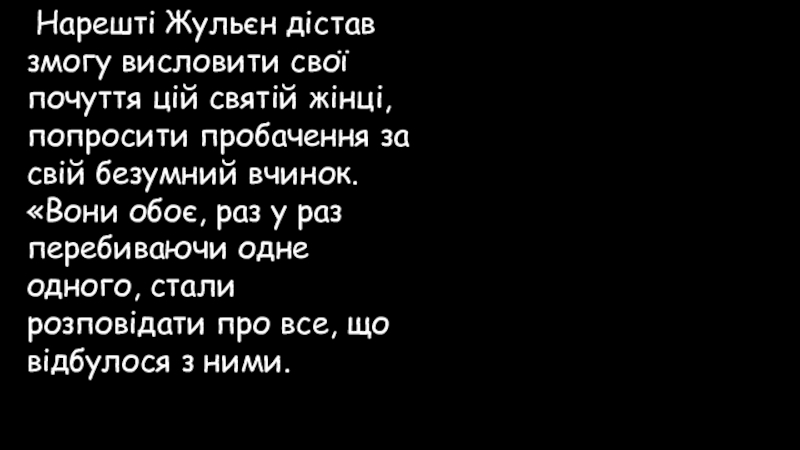 Слайд 78 Нарешті Жульєн дістав змогу висловити свої почуття цій святій жінці, попросити