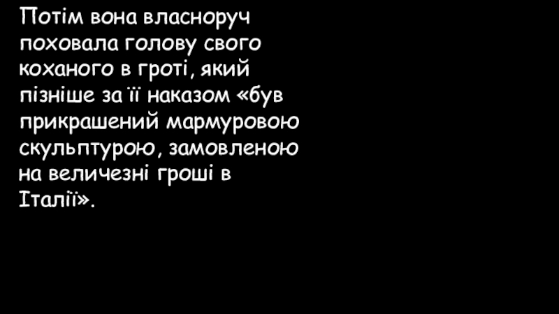 Слайд 91Потім вона власноруч поховала голову свого коханого в гроті, який пізніше
