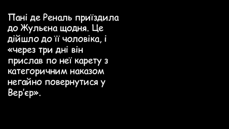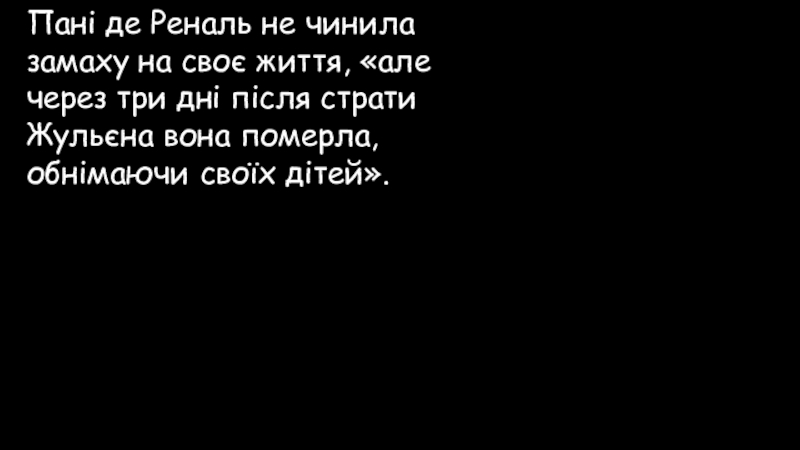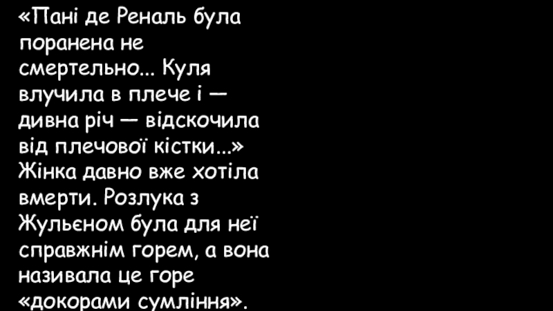 Слайд 92Пані де Реналь не чинила замаху на своє життя, «але через