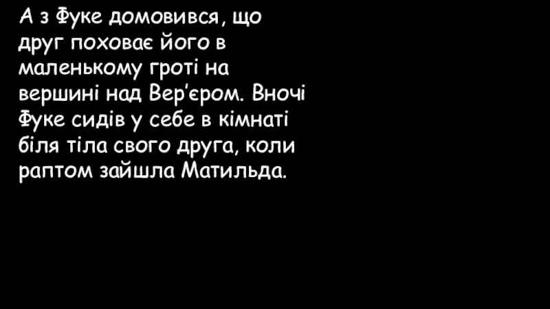 Слайд 88А з Фуке домовився, що друг поховає його в маленькому гроті