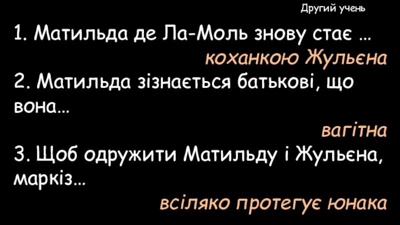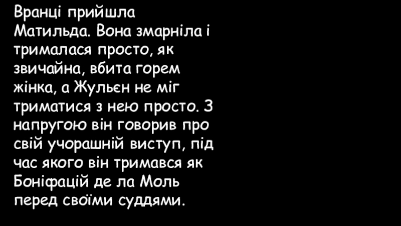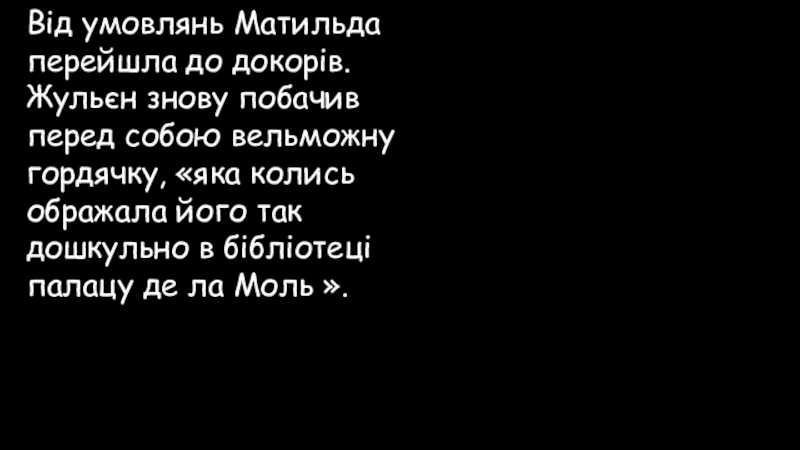 Слайд 76Від умовлянь Матильда перейшла до докорів. Жульєн знову побачив перед собою