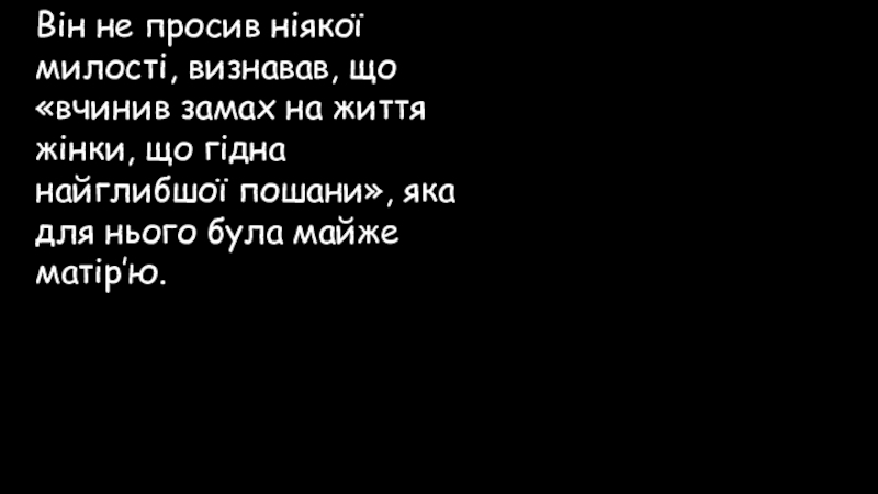 Слайд 69Він не просив ніякої милості, визнавав, що «вчинив замах на життя