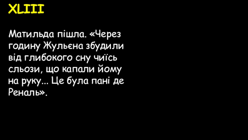 Матильда пішла. «Через годину Жульєна збудили від глибокого сну чиїсь сльози,