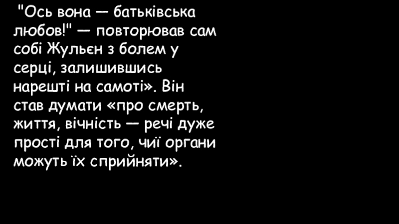 Слайд 84 "Ось вона — батьківська любов!" — повторював сам собі Жульєн з