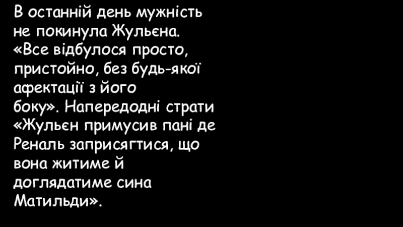 Слайд 87В останній день мужність не покинула Жульєна. «Все відбулося просто, пристойно,