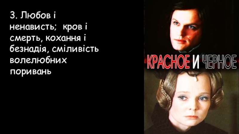 Слайд 983. Любов і ненависть; кров і смерть, кохання і безнадія, сміливість
