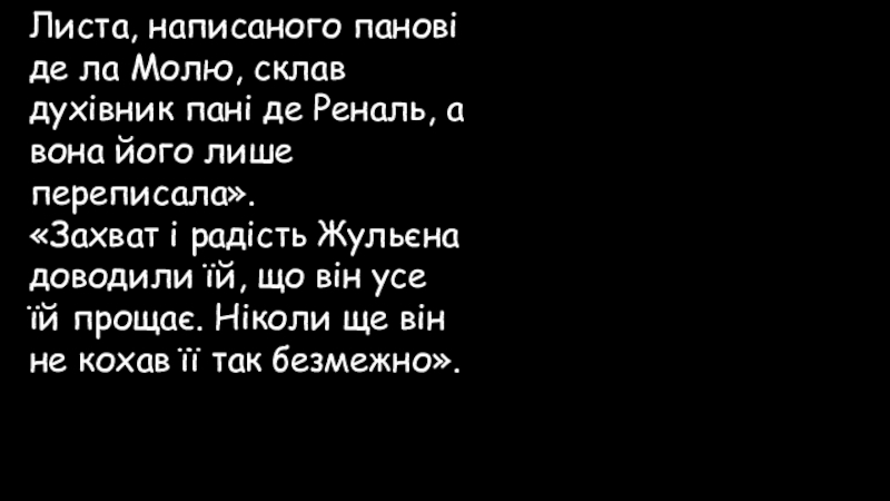 Слайд 79Листа, написаного панові де ла Молю, склав духівник пані де Реналь,