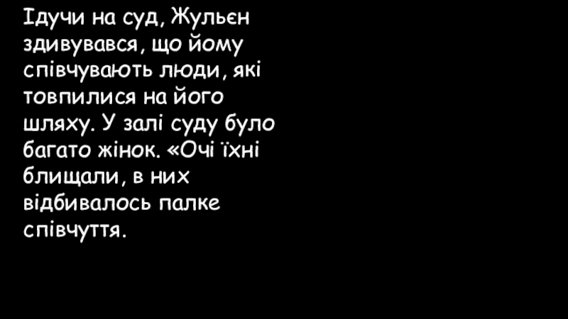 Слайд 66Ідучи на суд, Жульєн здивувався, що йому співчувають люди, які товпилися