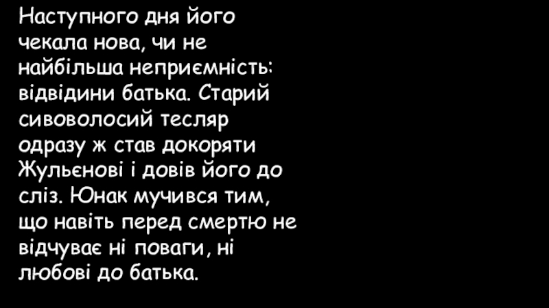 Слайд 82Наступного дня його чекала нова, чи не найбільша неприємність: відвідини батька. Старий