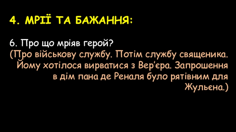 6. Про що мріяв герой?