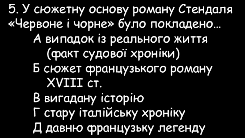 Слайд 85. У сюжетну основу роману Стендаля «Червоне і чорне» було покладено…