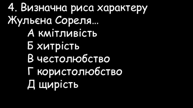 Слайд 204. Визначна риса характеру Жульєна Сореля…