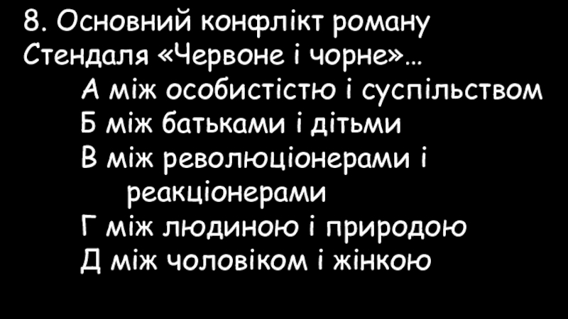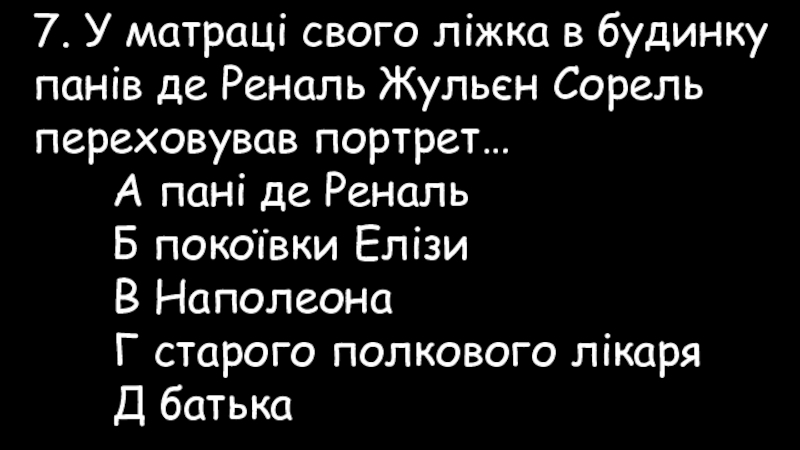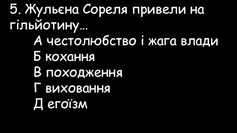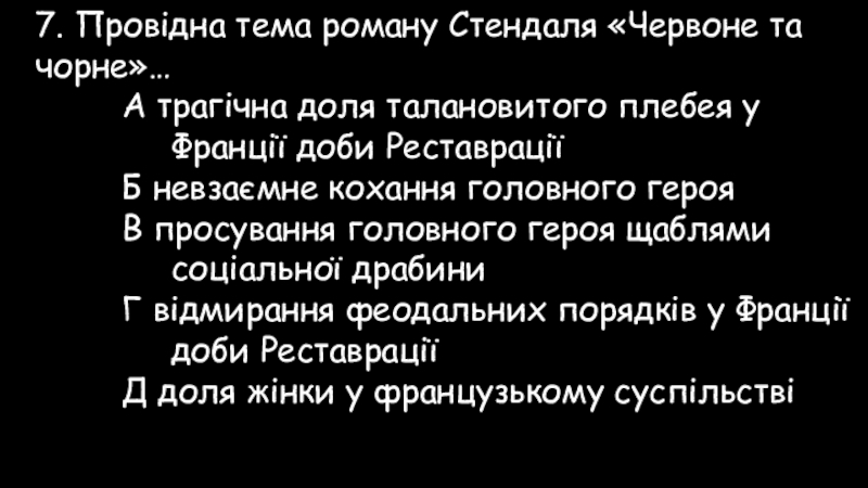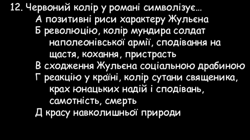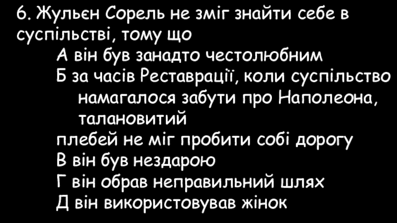 Слайд 226. Жульєн Сорель не зміг знайти себе в суспільстві, тому що