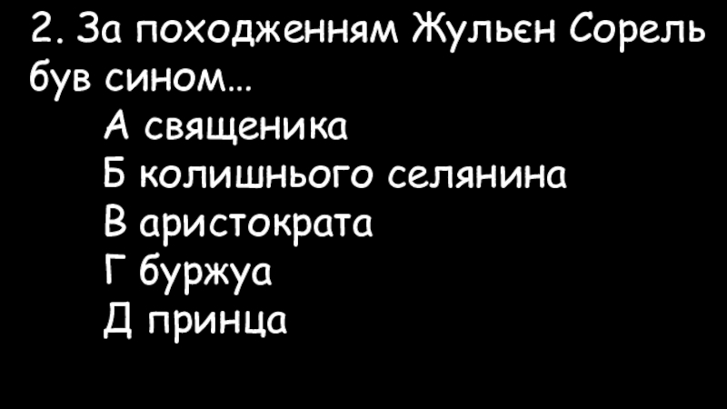 Слайд 182. За походженням Жульєн Сорель був сином…