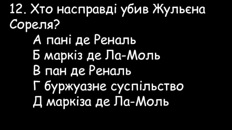Слайд 2812. Хто насправді убив Жульєна Сореля?