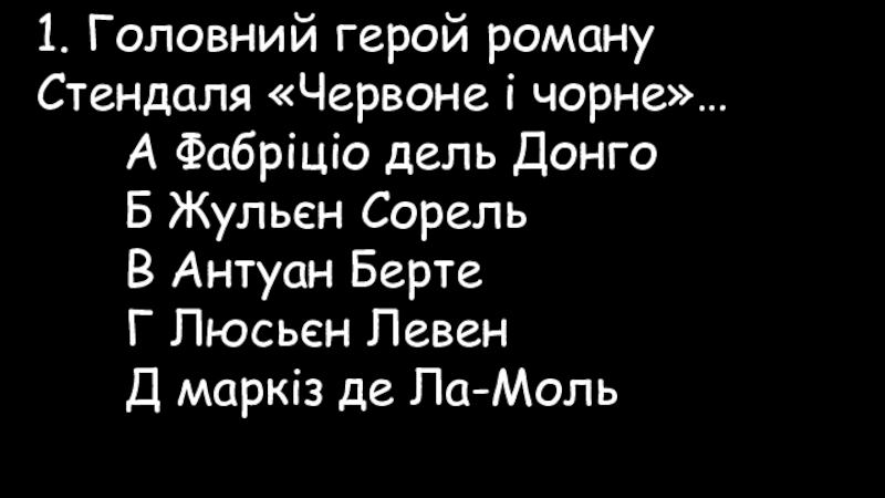 Слайд 171. Головний герой роману Стендаля «Червоне і чорне»…
