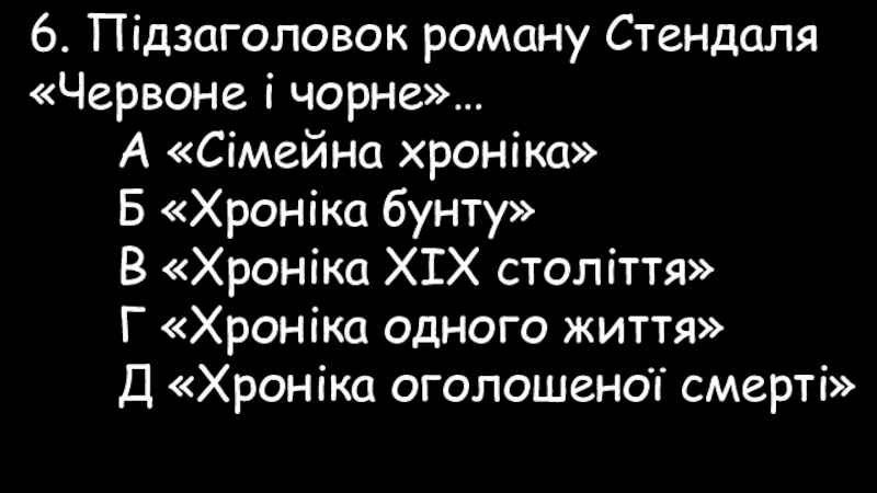 Слайд 96. Підзаголовок роману Стендаля «Червоне і чорне»…