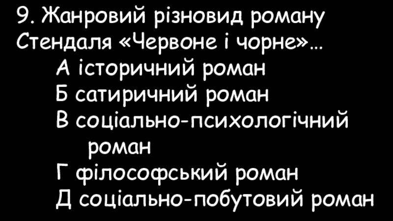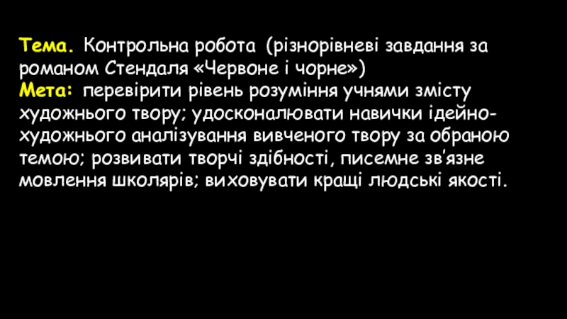 Слайд 2Тема. Контрольна робота (різнорівневі завдання за романом Стендаля «Червоне і чорне»)
