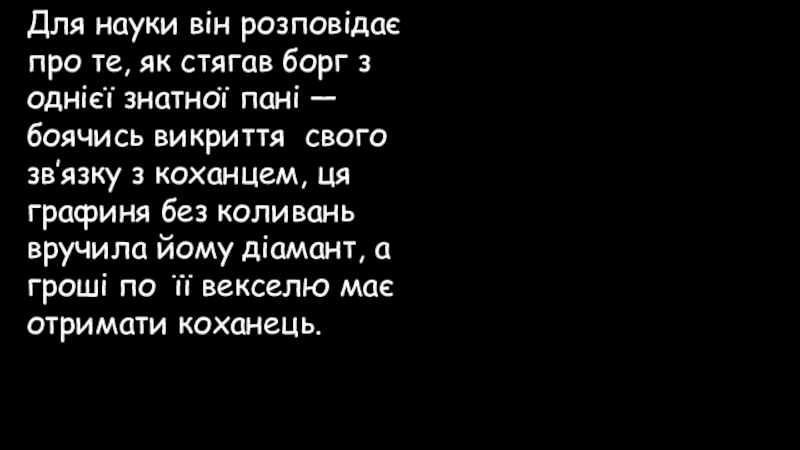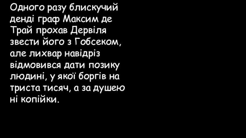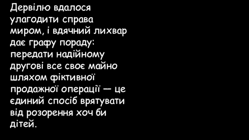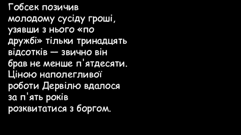 Слайд 64Дервілю вдалося улагодити справа миром, і вдячний лихвар дає графу пораду: