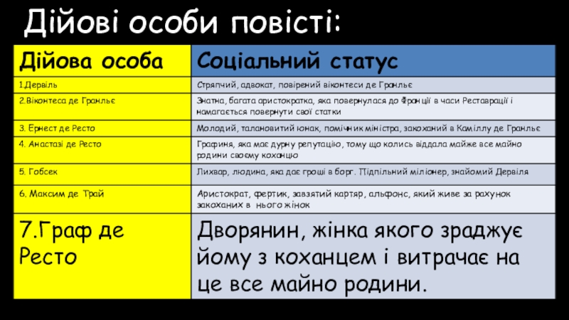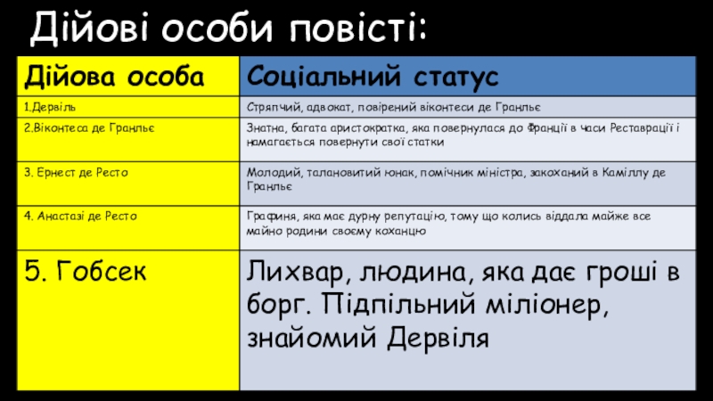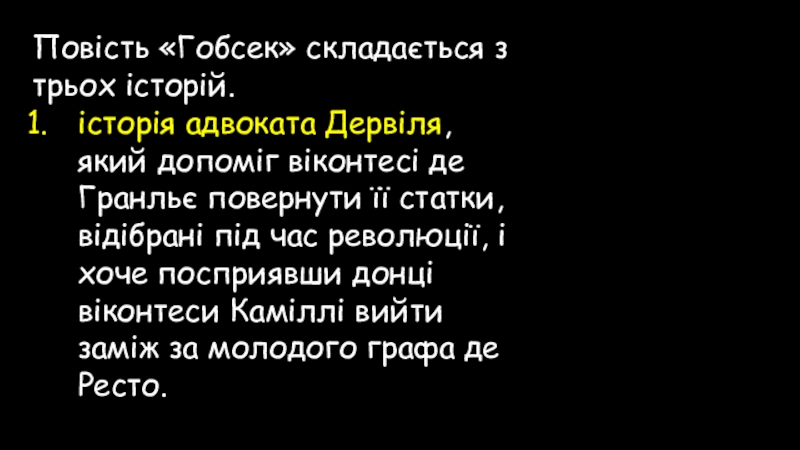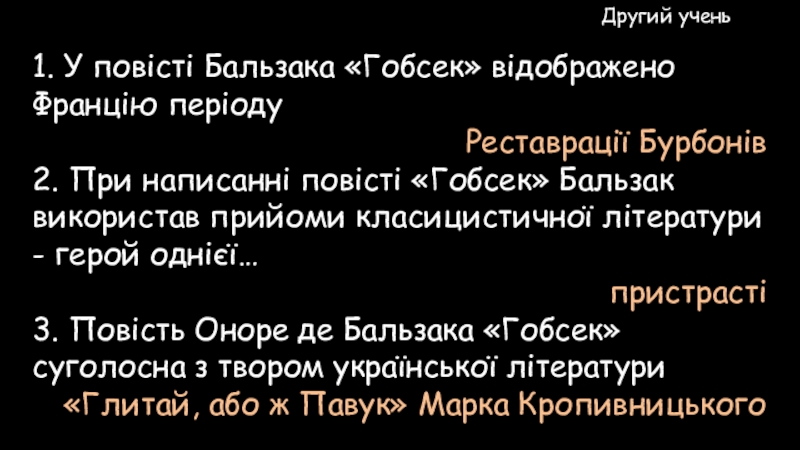 1. У повісті Бальзака «Гобсек» відображено Францію періоду