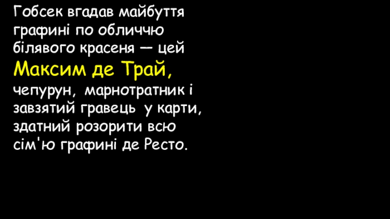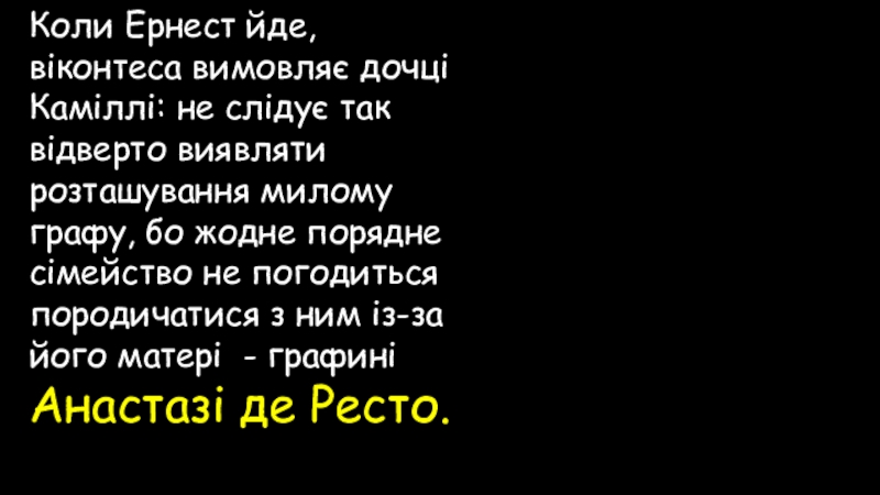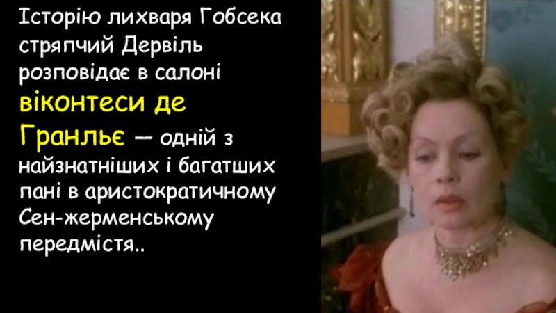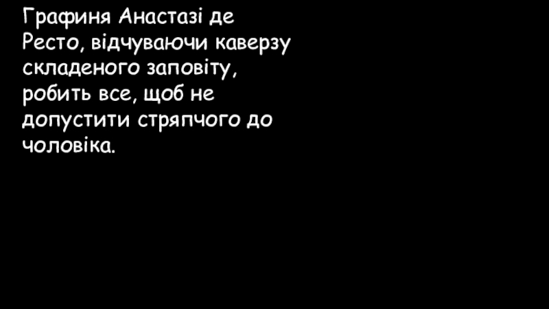 Слайд 70Графиня Анастазі де Ресто, відчуваючи каверзу складеного заповіту, робить все, щоб