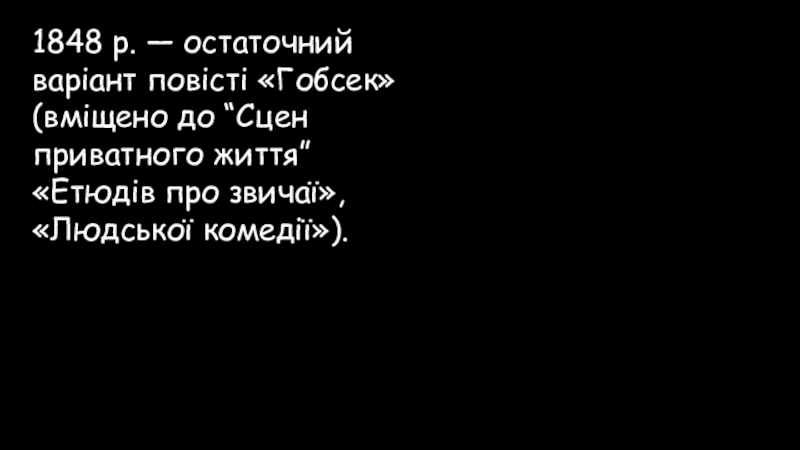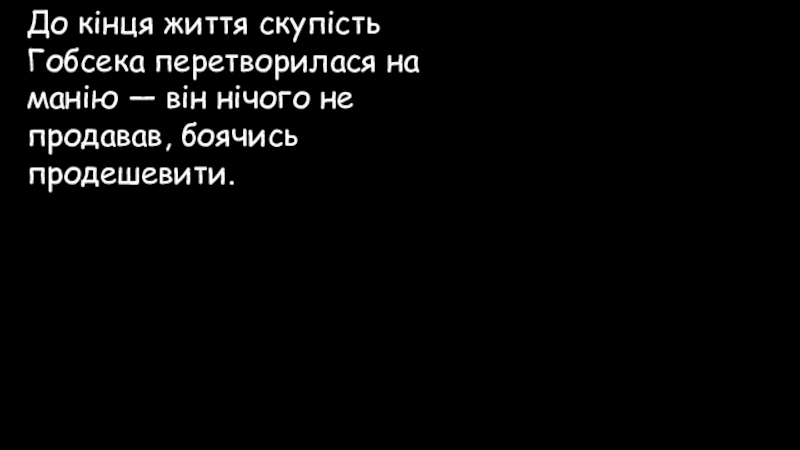 Слайд 81До кінця життя скупість Гобсека перетворилася на манію — він нічого