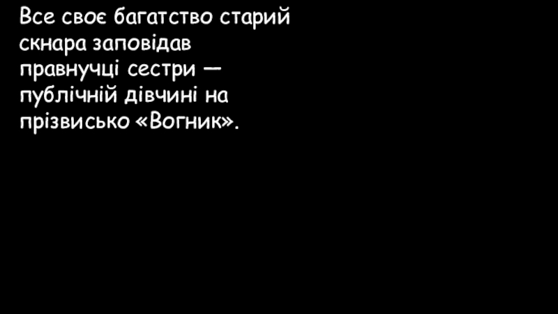 Слайд 79Все своє багатство старий скнара заповідав правнучці сестри — публічній дівчині