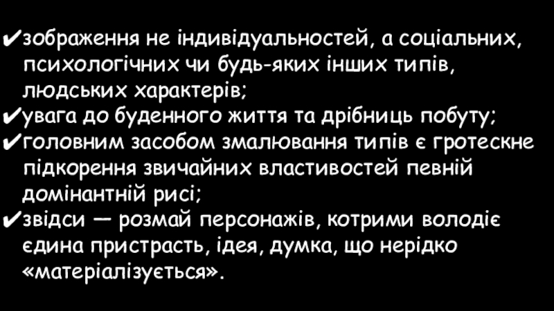 Слайд 92зображення не індивідуальностей, а соціальних, психологічних чи будь-яких інших типів, людських