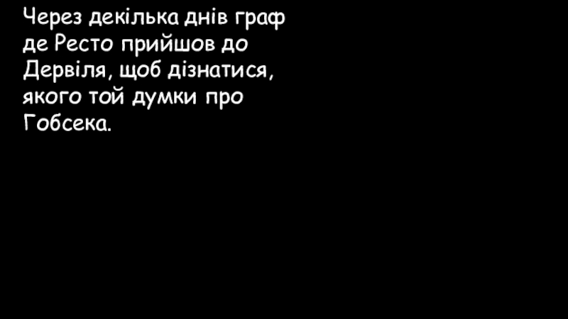 Слайд 65Через декілька днів граф де Ресто прийшов до Дервіля, щоб дізнатися,