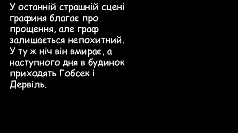 Слайд 74У останній страшній сцені графиня благає про прощення, але граф залишається