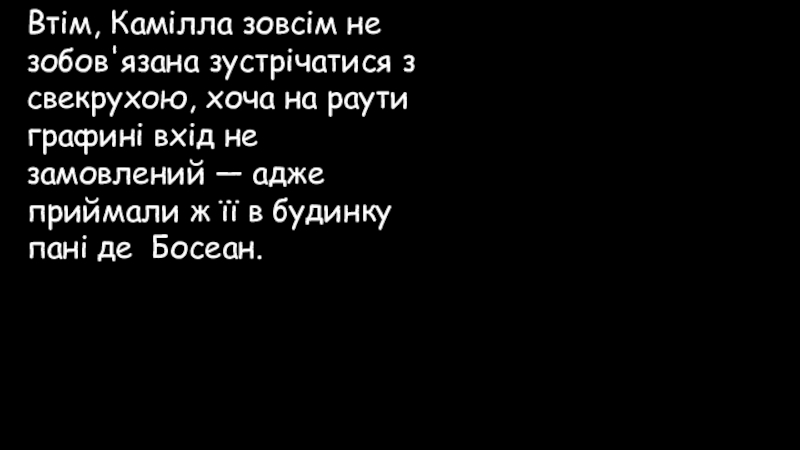 Слайд 84Втім, Камілла зовсім не зобов'язана зустрічатися з свекрухою, хоча на раути