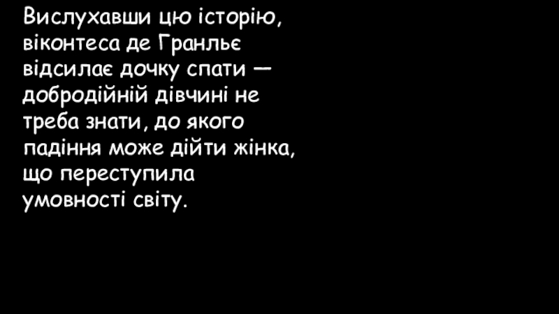 Слайд 68Вислухавши цю історію, віконтеса де Гранльє відсилає дочку спати — добродійній