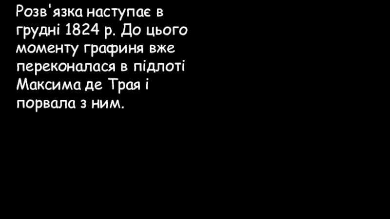 Слайд 71Розв'язка наступає в грудні 1824 р. До цього моменту графиня вже
