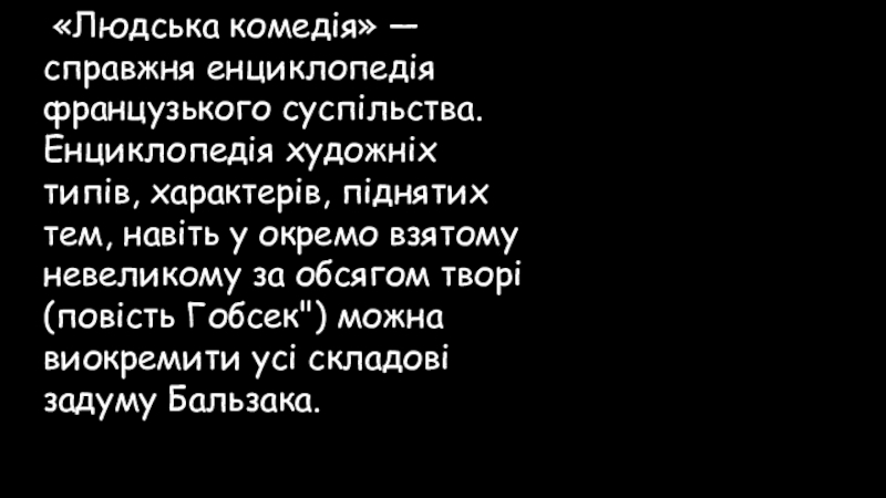 Слайд 19 «Людська комедія» — справжня енциклопедія французького суспільства. Енциклопедія художніх типів,