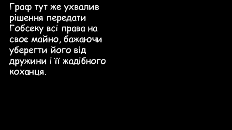 Слайд 67Граф тут же ухвалив рішення передати Гобсеку всі права на своє