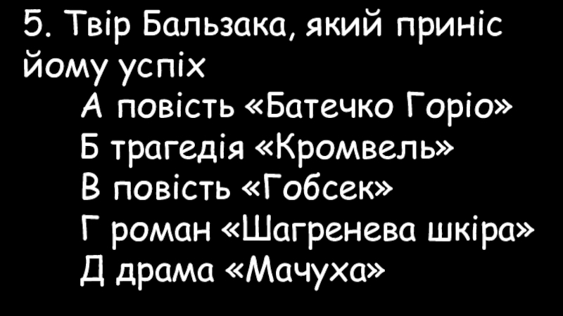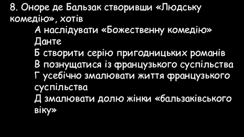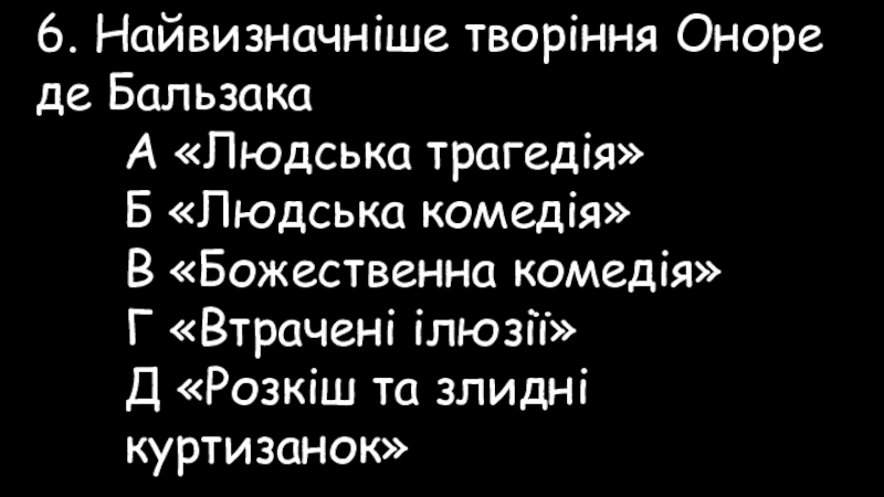 ТЕСТ. БАЛЬЗАК БІОГРАФІЯ «ЛЮДСЬКА КОМЕДІЯ» ЗНО