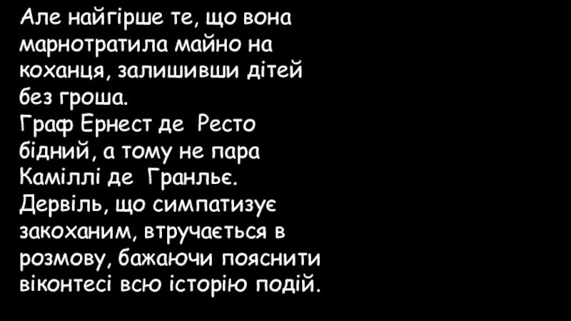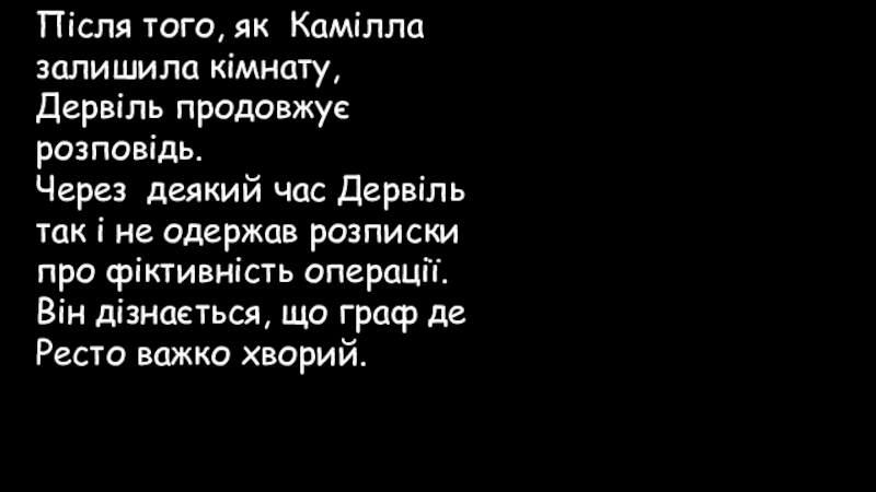 Слайд 69Після того, як Камілла залишила кімнату, Дервіль продовжує розповідь.