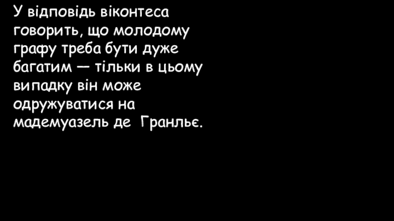 Слайд 83У відповідь віконтеса говорить, що молодому графу треба бути дуже багатим