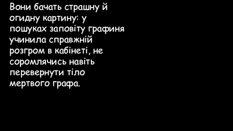 Слайд 75Вони бачать страшну й огидну картину: у пошуках заповіту графиня учинила
