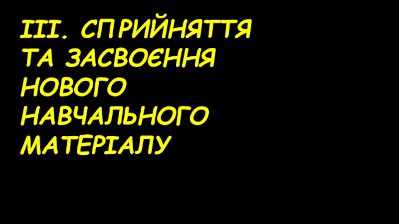 Слайд 21IІІ. СПРИЙНЯТТЯ ТА ЗАСВОЄННЯ НОВОГО НАВЧАЛЬНОГО МАТЕРІАЛУ