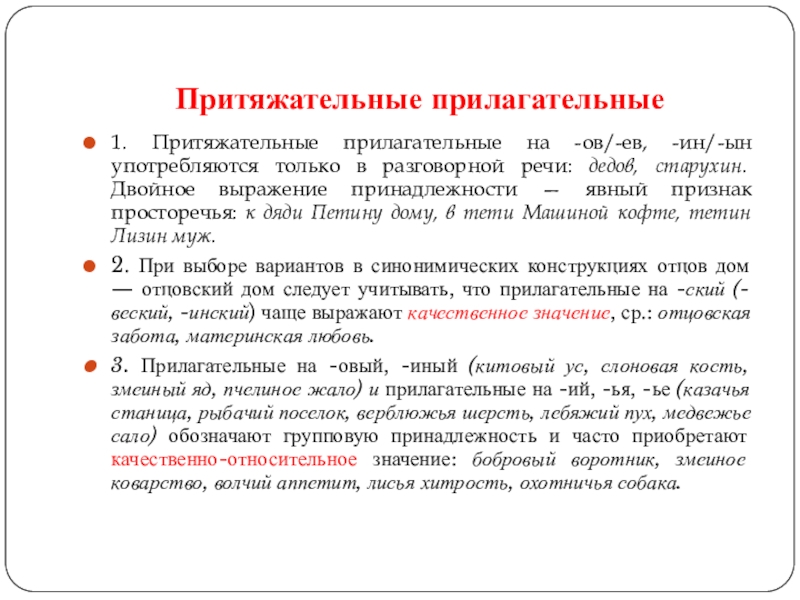 1. Притяжательные прилагательные на -ов/-ев, -ин/-ын употребляются только в разговорной