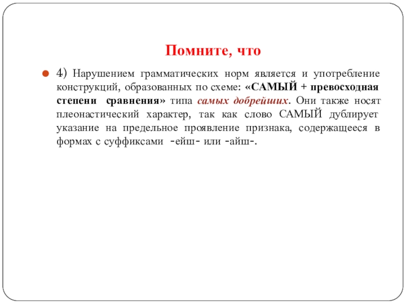 схеме: «САМЫЙ + превосходная степени сравнения» типа самых добрейших. Они также носят плеонастический характер, так как слово САМЫЙ дублирует указание на предельное проявление признака, содержащееся в формах с суффиксами -ейш- или -айш-.