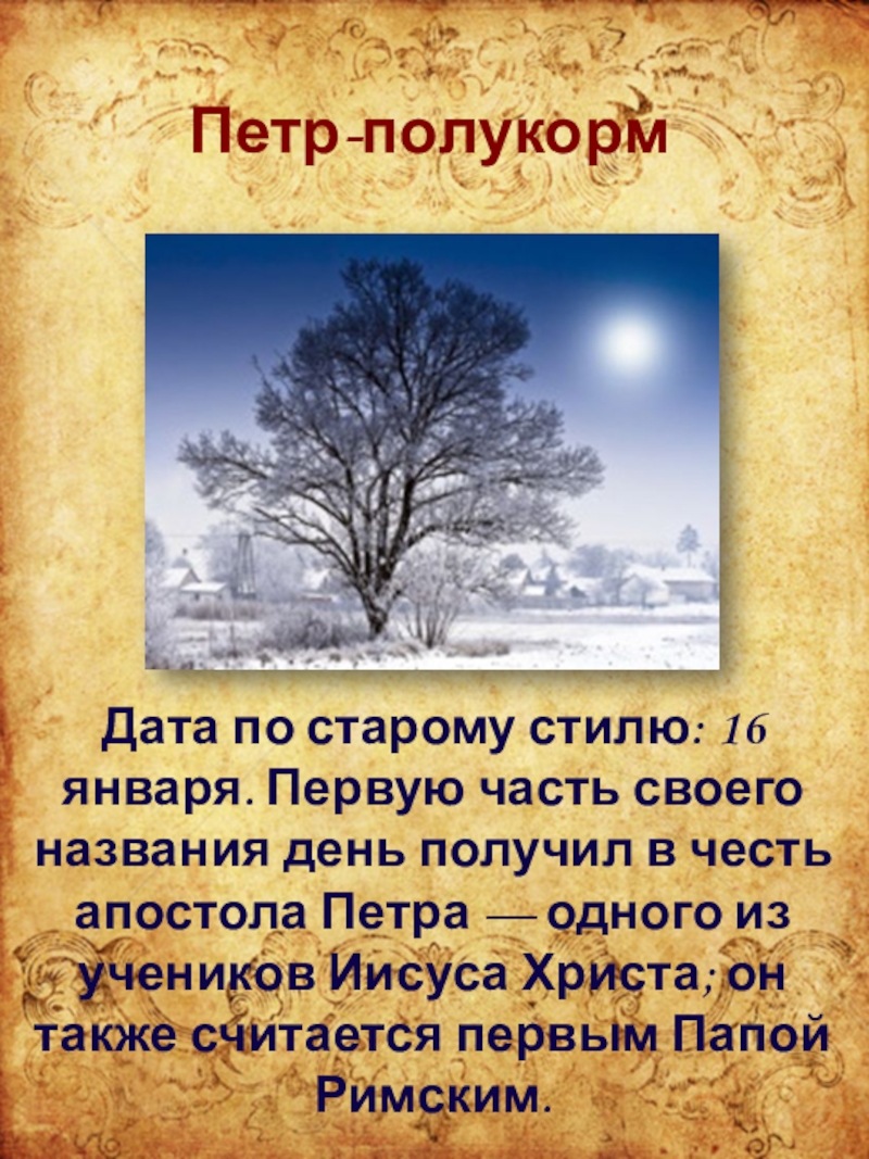 Дата по старому стилю: 16 января. Первую часть своего названия день