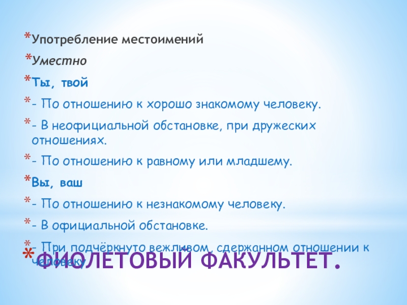 Слайд 15ФИОЛЕТОВЫЙ ФАКУЛЬТЕТ.