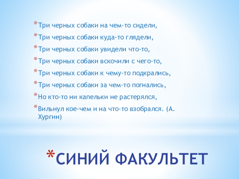 Слайд 13СИНИЙ ФАКУЛЬТЕТ