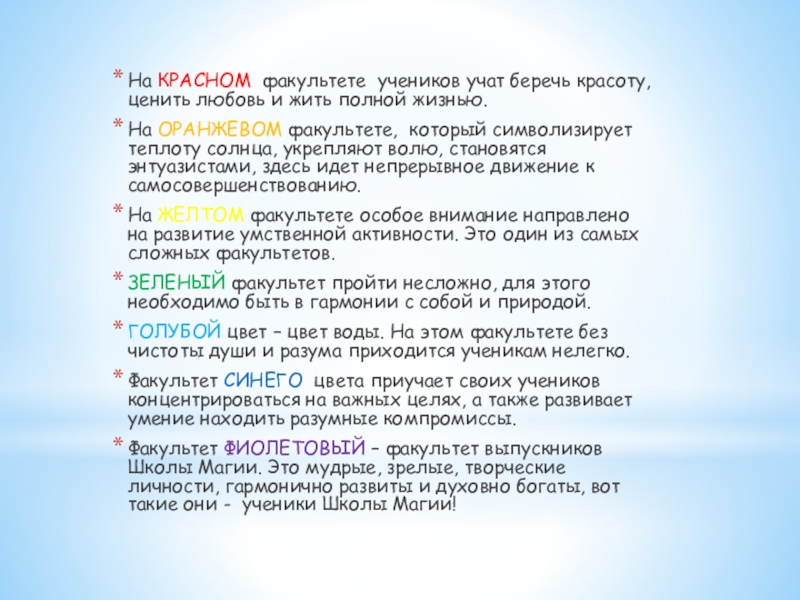 Слайд 3На КРАСНОМ факультете учеников учат беречь красоту, ценить любовь и жить
